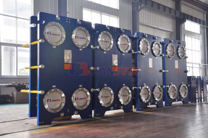 金屬板和活動壓緊板安裝在懸掛梁上,並由下導杆定位,而杆端則固定在支撐柱上,但如果其中一種液體或兩種液體在換熱器內不止通過一次,則接口應開在固定板和活動壓緊板上。